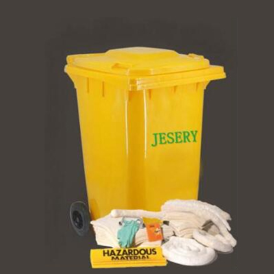 Lightweight、high-visibility wheeled container kits roll up to 30 gallons of spills.