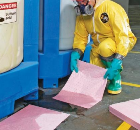 Specially treated to absorb highly concentrated corrosive liquids such as sulfuric acid and sodium hydroxide