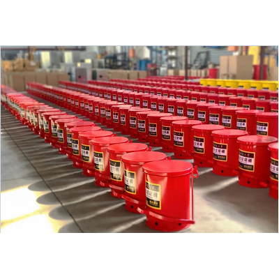 Inflammable fireproof trash can、using the bottom hanging design can improve the heat dissipation、thereby reducing the hidden danger of spontaneous combustion of oily waste caused by excessive temperature in the bucket、Flammable fireproof trash can foot cover design makes the open flame easy to isolate.